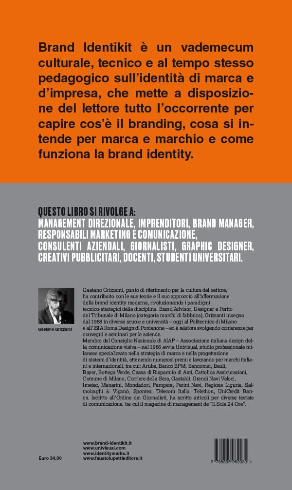 “Brand Identikit” è un vademecum culturale, tecnico e al tempo stesso pedagogico sull’identità di marca e d’impresa, che mette a disposizione del lettore tutto l’occorrente per capire cos’è il branding, cosa si intende per marca e marchio e come funziona la brand identity. Questo libro si rivolge a: Management direzionale, imprenditori, brand manager, responsabili marketing e comunicazione, Consulenti aziendali, giornalisti, graphic designer, creativi pubblicitari, docenti, studenti universitari. Il volume è strutturato in quattro sezioni. La prima riguarda la “Marca” e la seconda il “Marchio” ed entrambe costituiscono la parte nozionistica della materia, cioè tutto quello che si deve sapere per avere le basi cognitive sulla brand identity. La terza sezione racconta le storie di venti marche riconosciute, selezionate tra quelle più rappresentative dal punto di vista del branding. L’ultima sezione, infine, raccoglie stimoli e argomenti di attualità legati al mondo del brand. Brand Identikit rende chiara e comprensibile la natura complessa della brand identity, che sia per un’impresa o per un prodotto/servizio: una leva intangibile che ha il potere di differenziare e connotare qualunque entità nella percezione del proprio cliente, costruendo quindi, le fondamenta indispensabili per il successo e la competitività di una marca. Brand Identikit rivela il vero significato di “Branding” contestualizzato nella realtà italiana e internazionale, dimostrando, esempi alla mano, come trasformare una mentalità di business basata sul prodotto, in una strategia orientata al brand. Brand Identikit propone una guida pratica con tutto l’occorrente per capire cos’è e come funziona un marchio, una marca, un logo e la brand identity. Brand Identikit adotta un modo di scrivere informale, chiaro, denso di informazioni, integrato da schemi, esempi e immagini descrittive rispetto alla galassia di concetti e modelli espressi nella vastissima bibliografia del settore. Brand Identikit risponde a tutte le esigenze dei professionisti e delle imprese che devono differenziarsi dai concorrenti e competere in un mercato sempre più difficile e globale.